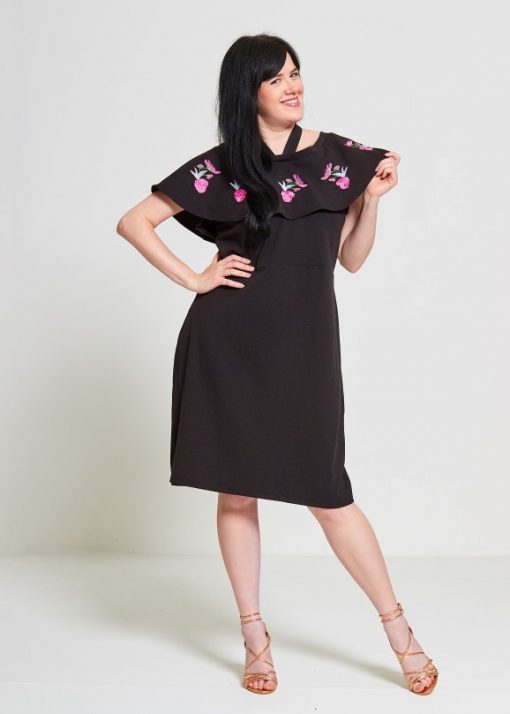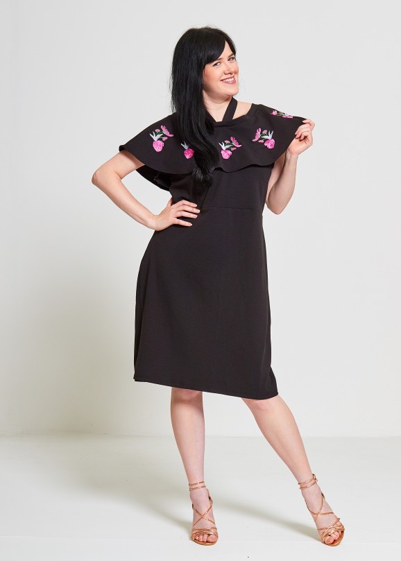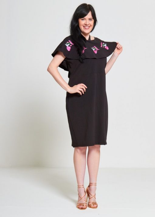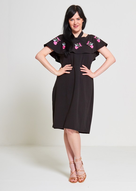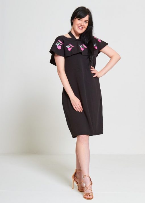 Styling tips Look to floral embroidery for the new season. Coming in a black hue, this dress features embroidery in the front. This versatile dress is all about the flower power. Team with our frill heels.