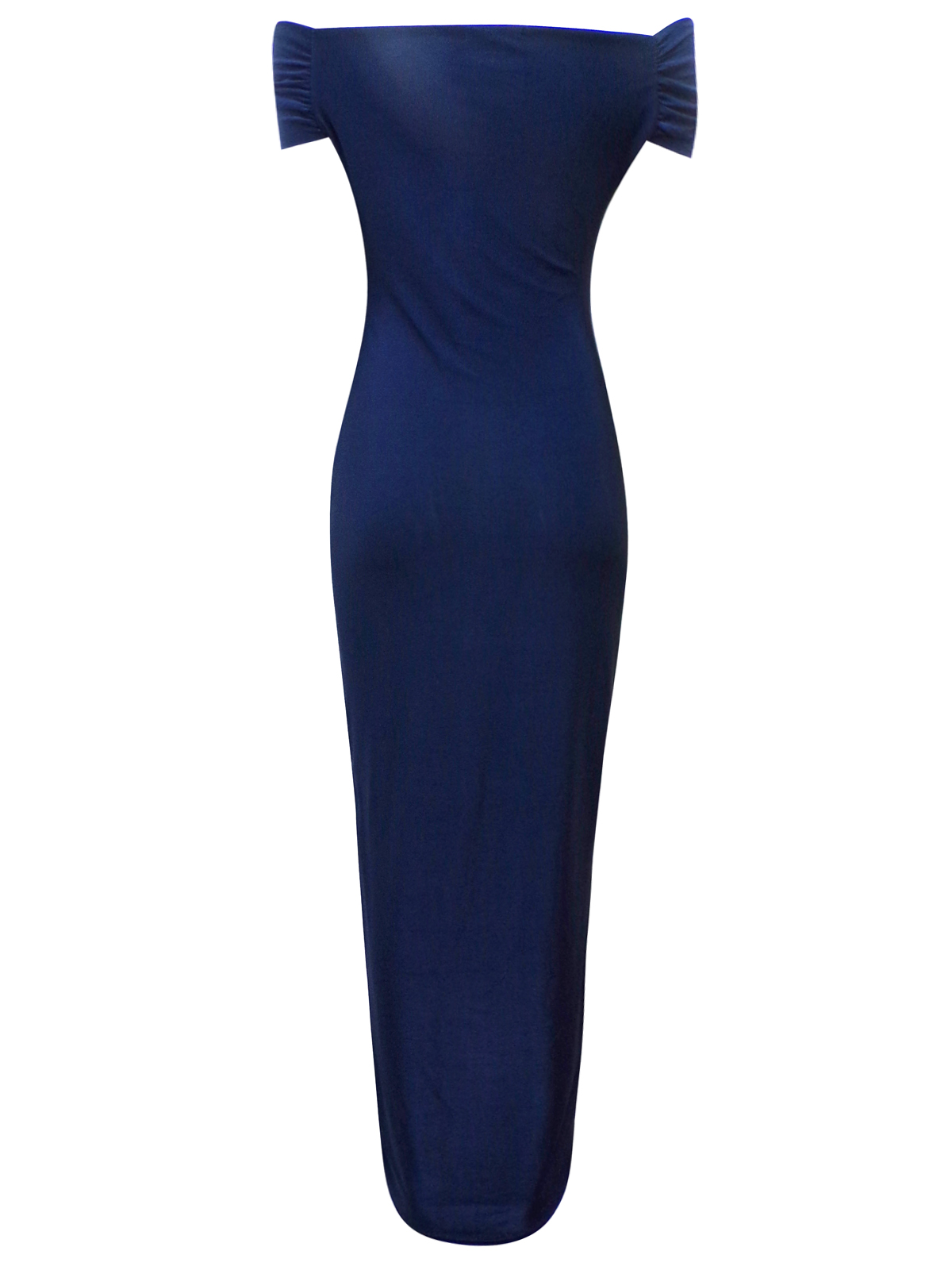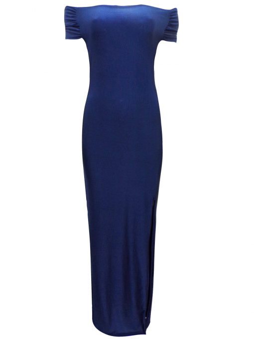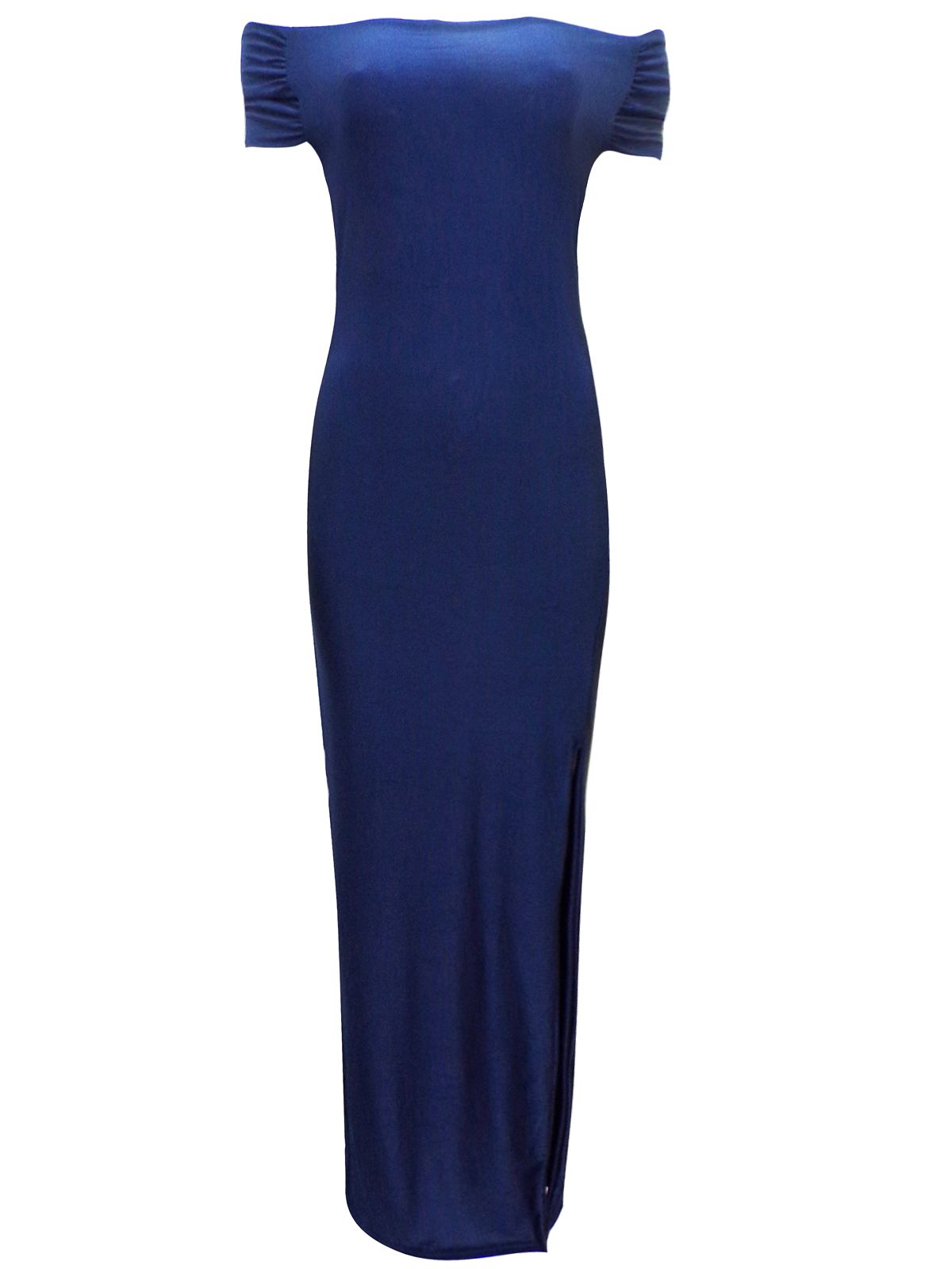 A navy maxi dress is the perfect fail-safe option for your event. Bring on the max factor in this beaut navy dress – featuring an off shoulder design with ruched sleeves and side split. Length 55in